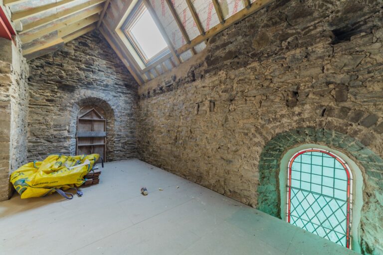 Bucks House presents a truly unique opportunity to acquire a partially converted former church with full planning consent to create ten luxury apartments across four floors in the heart of Douglas. With a projected gross development value exceeding 3 million, this landmark property combines heritage character with modern redevelopment potential, making it an exceptional proposition for discerning developers and investors.The property is offered for sale at under 1 million, with the current owner retaining one completed apartment. Significant investment has already been committed to ensure the building is both secure and watertight, with works including the installation of a new insulated Welsh Blue Slate roof with 150mm Kingspan, reinstated stained-glass windows, new concrete lintels, and a comprehensive programme of external stonework restoration.Inside, the churchs architectural beauty is immediately apparent, featuring impressive archways, a striking feature stained-glass window, and the original bell tower. A newly created lift shaft provides future provision for a glass-walled lift, while high-performance noise-reducing flooring systems with Rockwool insulation have been installed throughout. The development also benefits from three service chutes, fibre broadband availability, and suitability for electric heating with pressurised hot water cylinders.The lower ground level incorporates secure garaging for nine covered cars, with further external parking potential within the site boundary. Building materials already acquired will be included in the sale, and the option exists to hire the current owners equipment to continue the works seamlessly.Positioned on the corner of Bucks Road and Merton Bank, just moments from the Douglas business district, prome